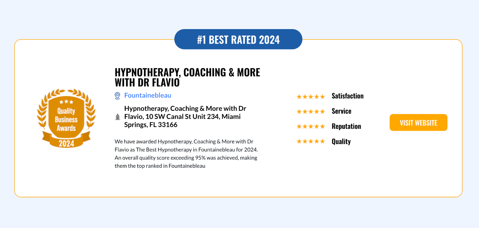 I would love to give Flavio 10 stars but 5 was the maximum allowed. He is outstanding, my sessions with him were an eye opening experience. Not only he is extremely intelligent but he has great communication skills, very capable of reading between the lines and beneath the surface of things. If you truly want to find the root of your pain and improve your life I would recommend without hesitation to work with Flavio.